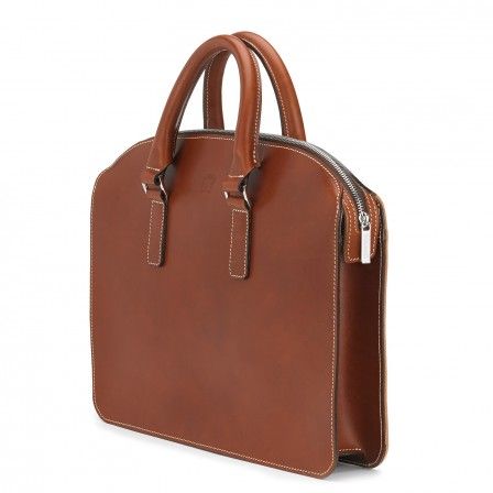 Exhibiting our craftsmanship and heritage perfectly, this crisp vegetable-tanned bridle leather bag in rich, traditional tan, is unlined, showing the smooth suede of the leather inside. It has a single main compartment with a full-width leather slip pocket and additional smaller leather patch pocket. A full-width zip keeps everything secure. The Henley is a petite briefcase, a size which is increasingly popular now that we tend to travel with a just tablet computer and a few papers, a thoroughly modern classic.